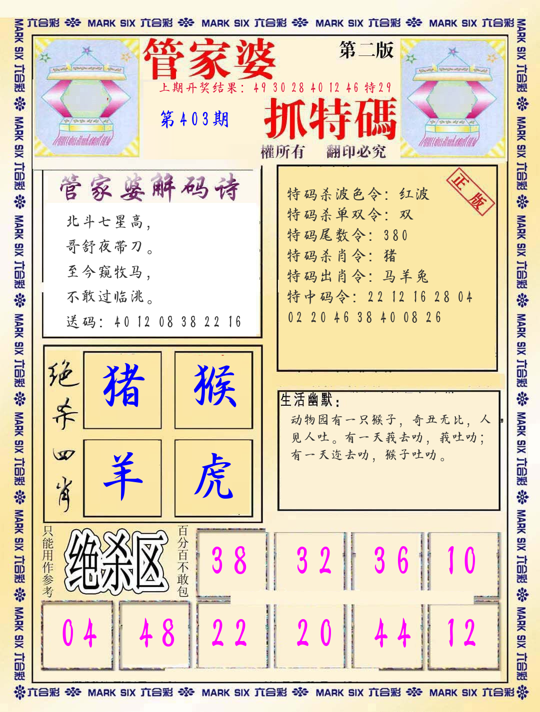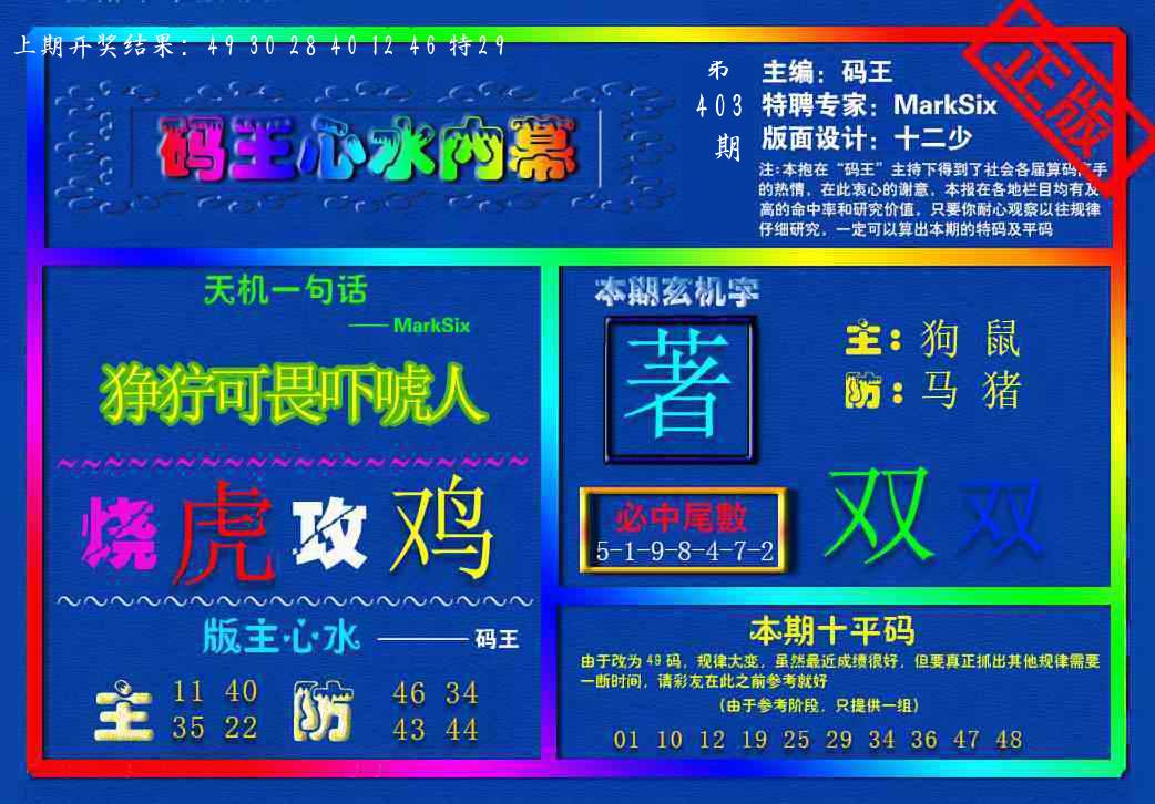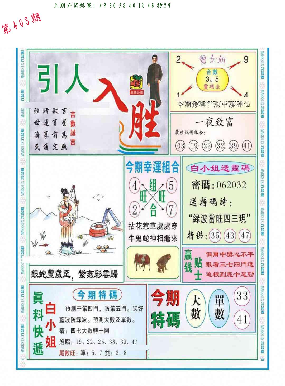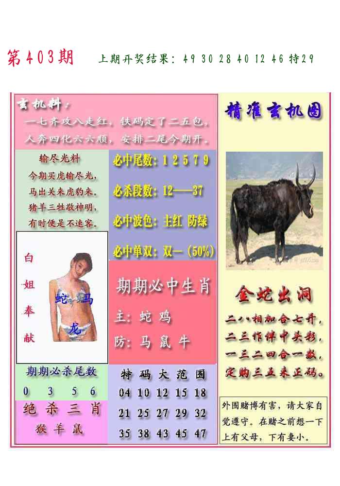 每日宝典图 另版蛇蛋图 猛虎报