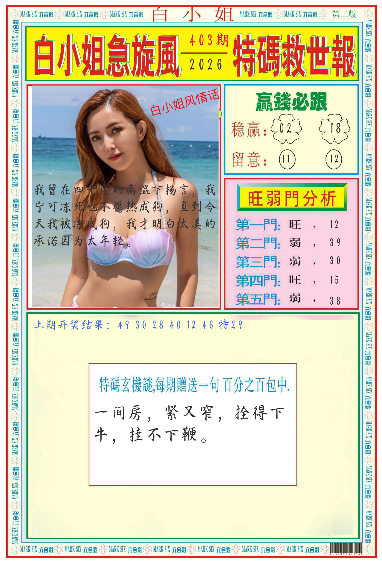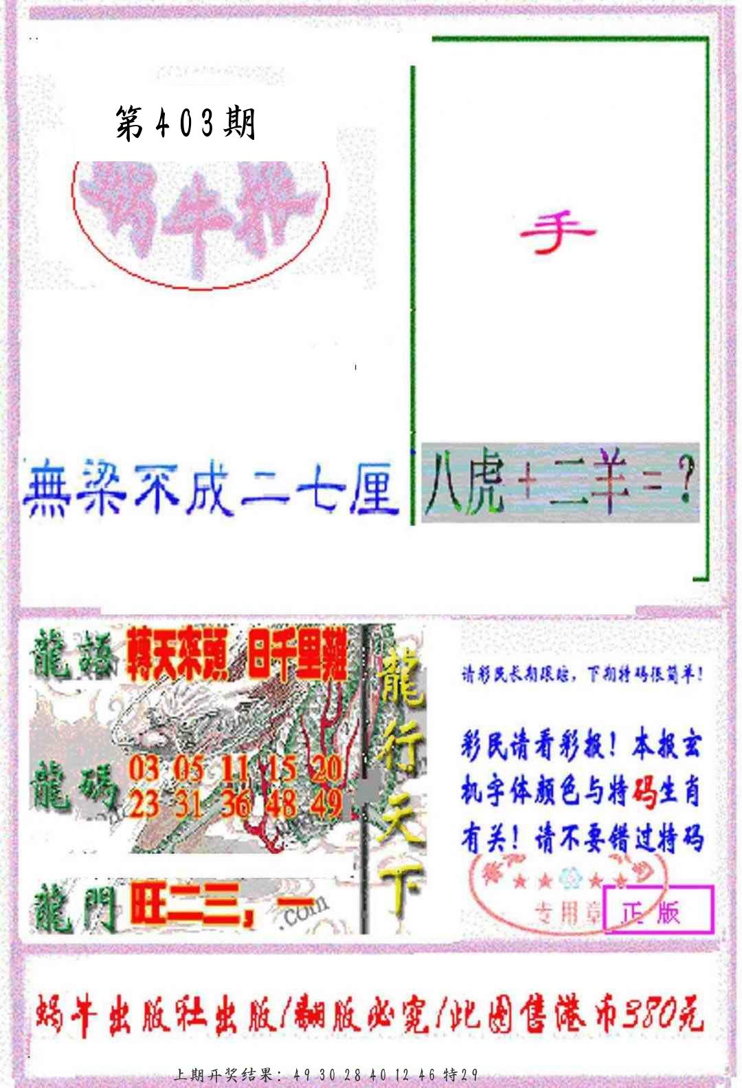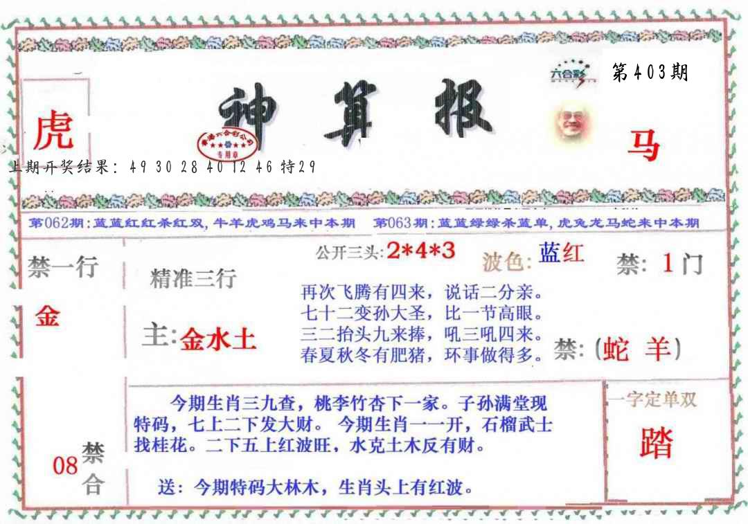 马经救世报2版 马经玄机图 龙头报