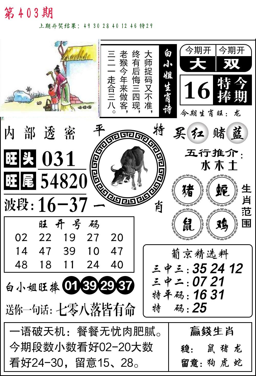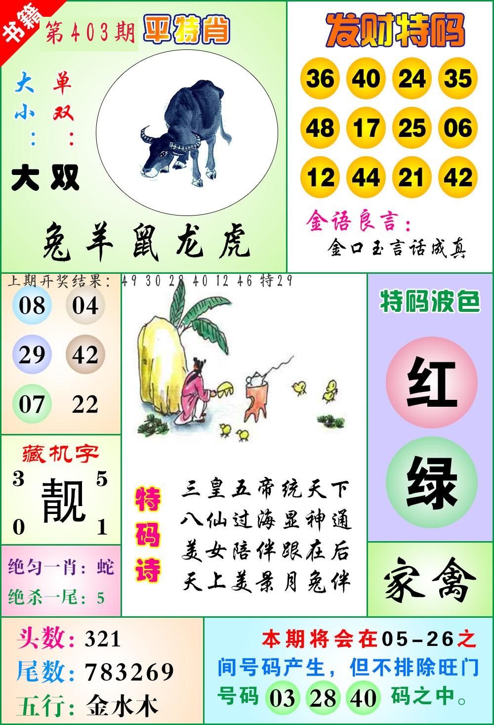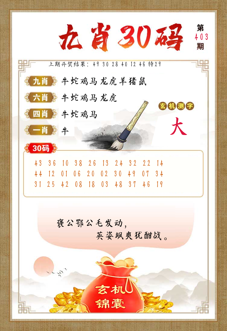 0329期:单双四肖八码 开:30牛对
