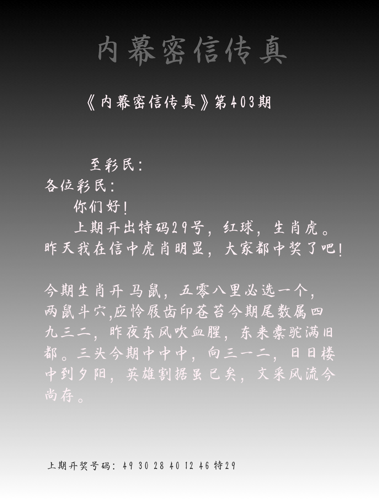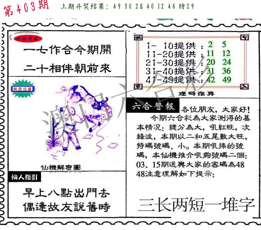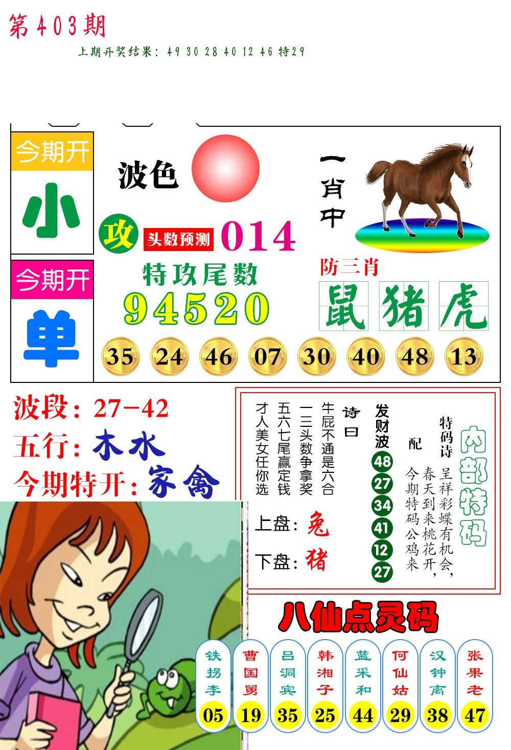 0329期:单双四肖八码 开:30牛对