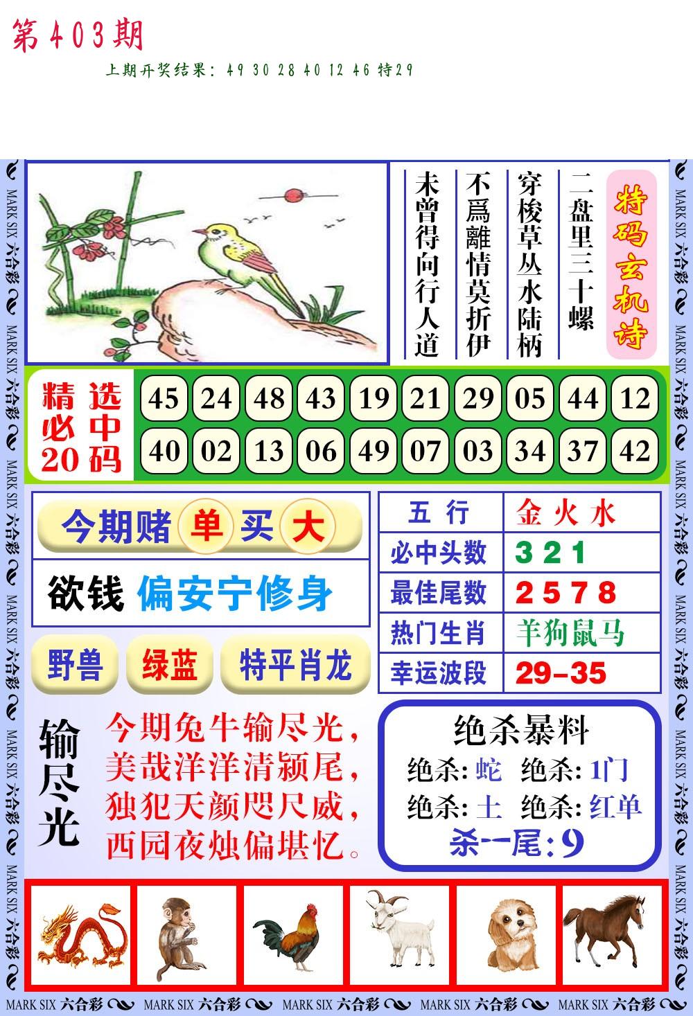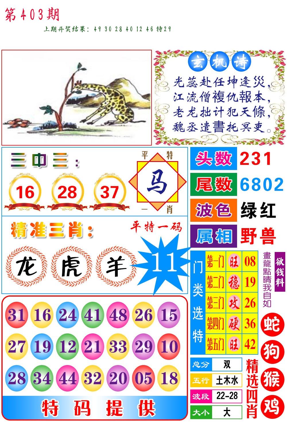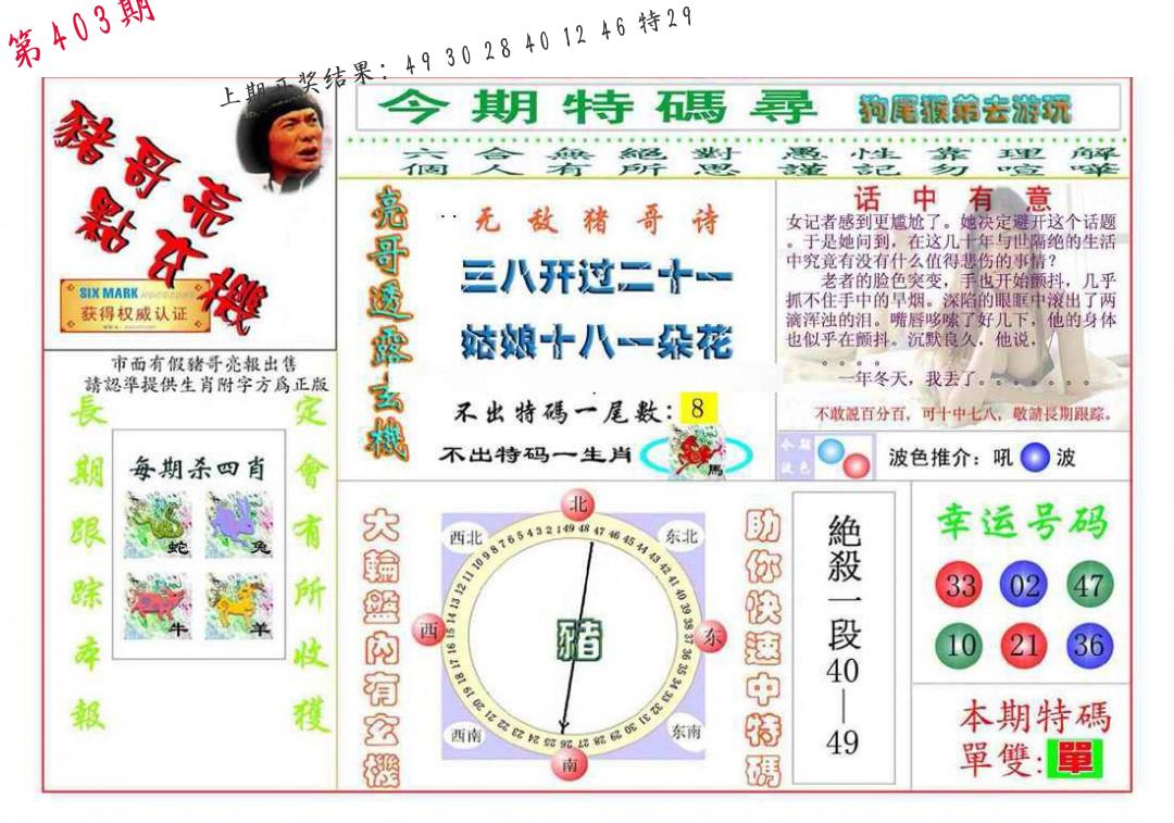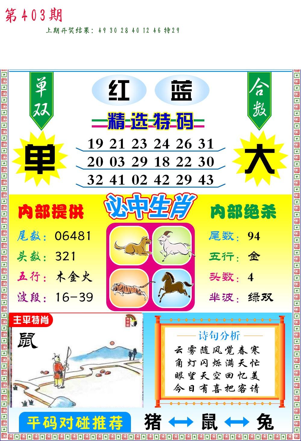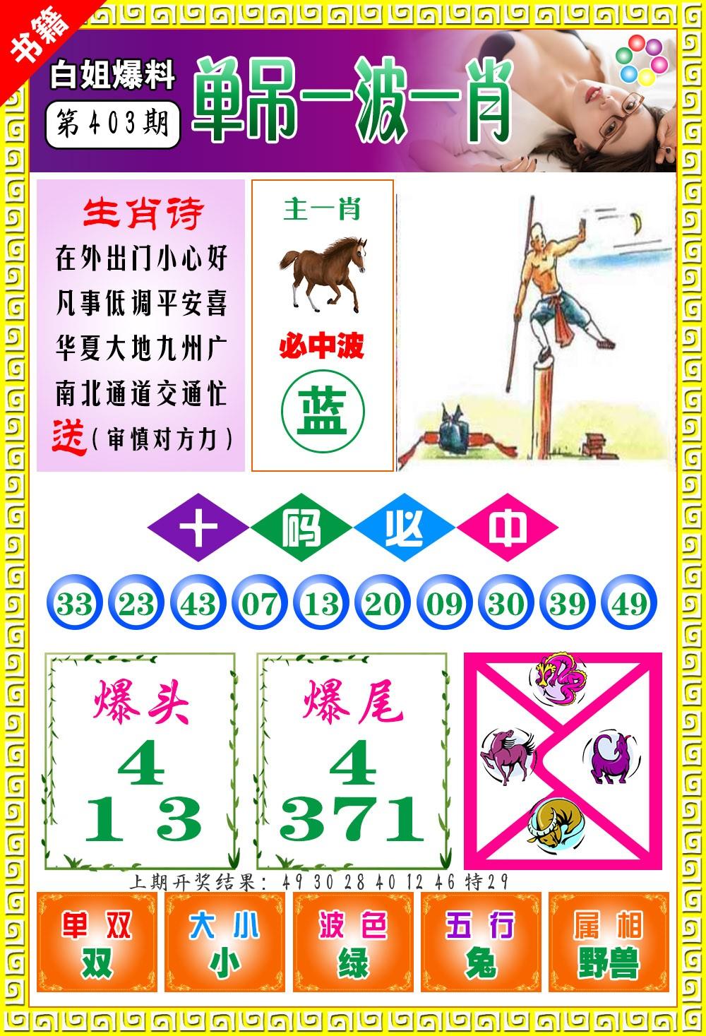 0402期:单双四肖八码 开:?????