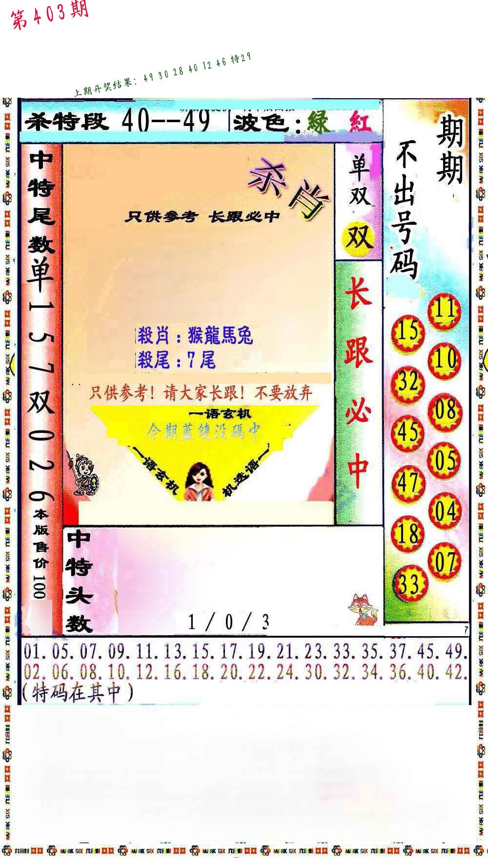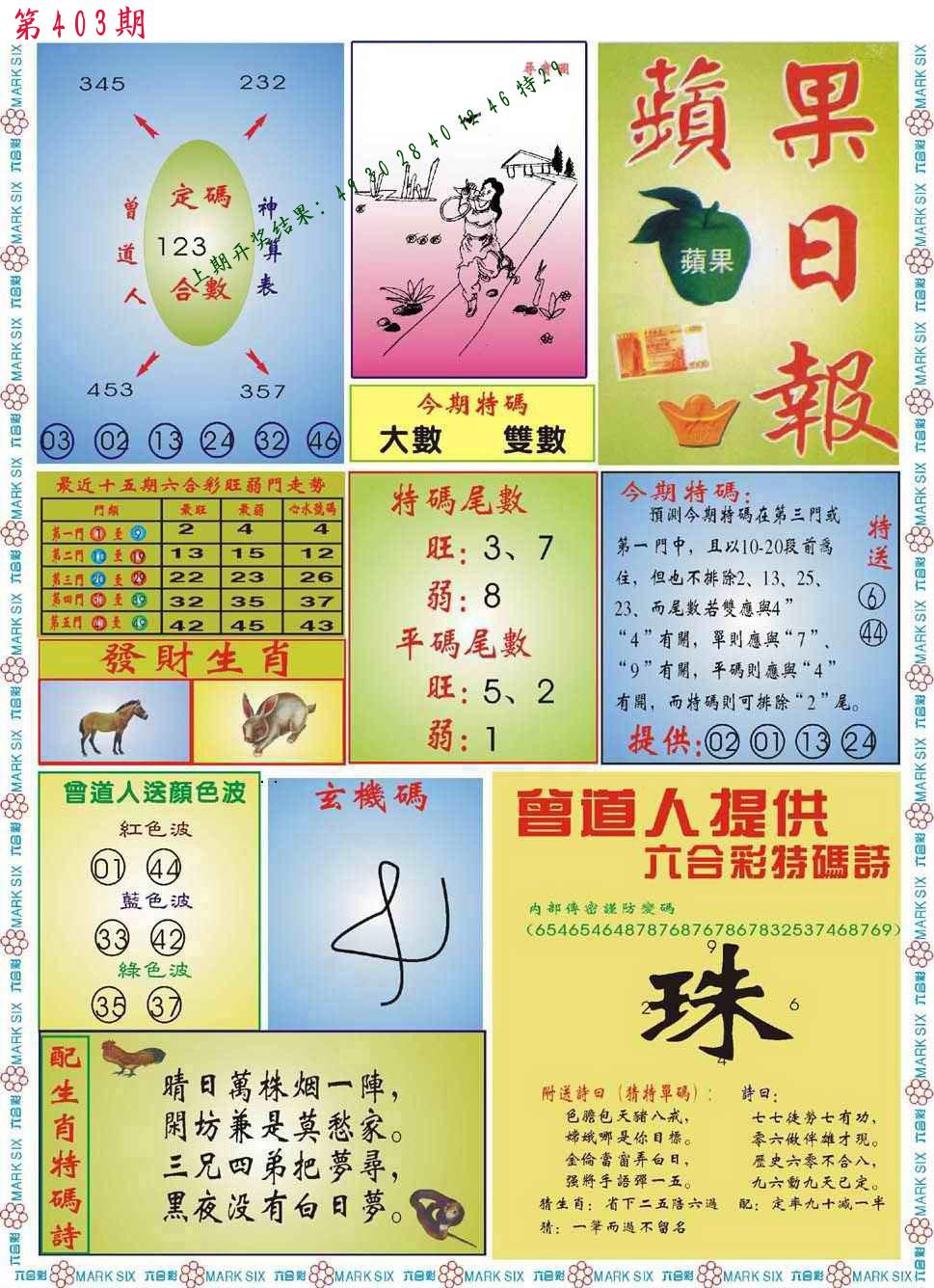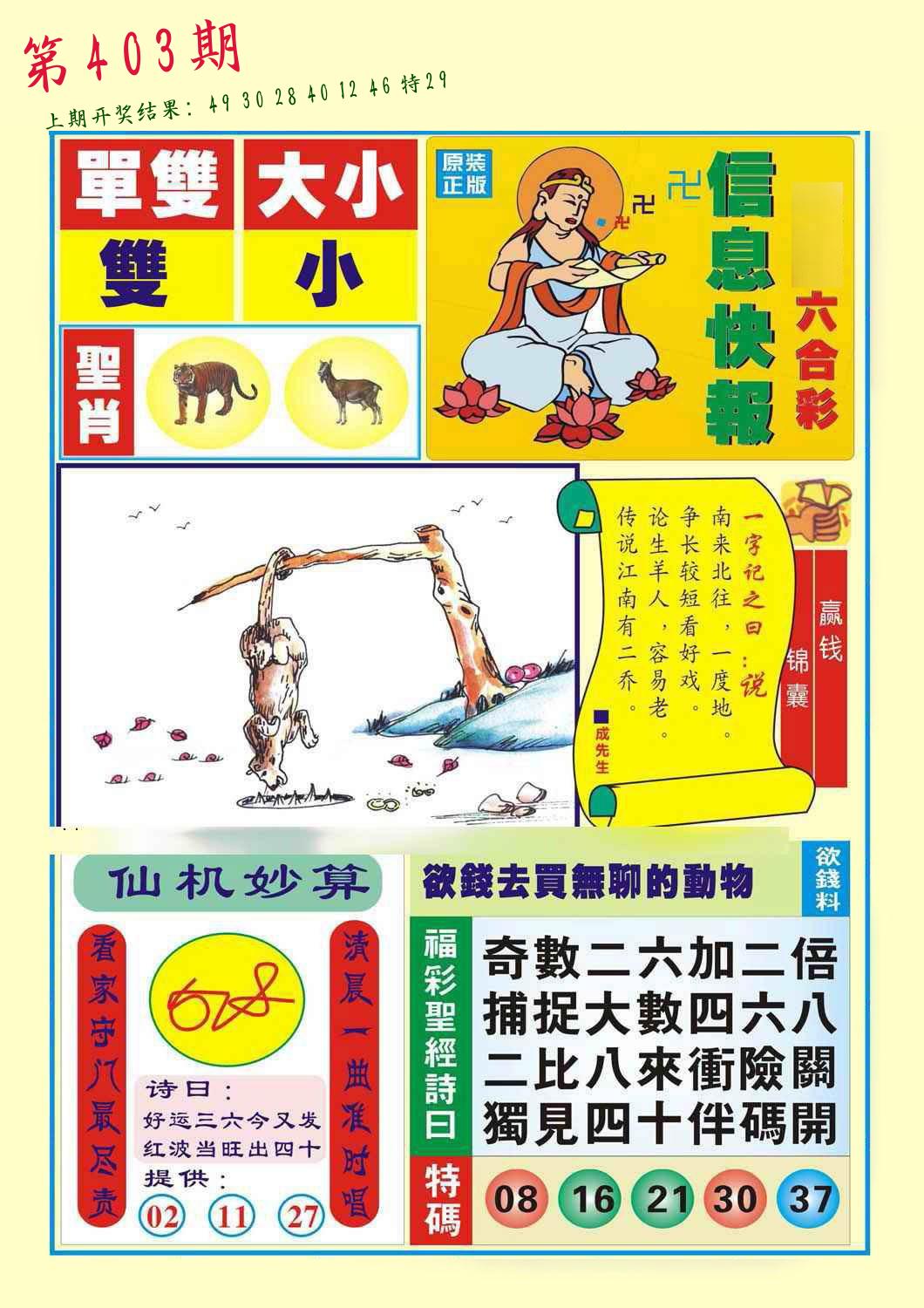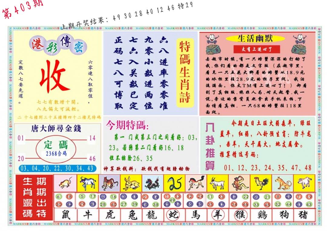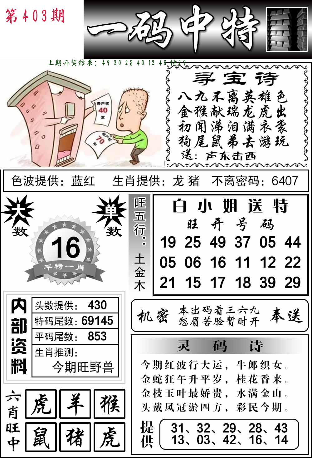0402期:单双四肖八码 开:?????