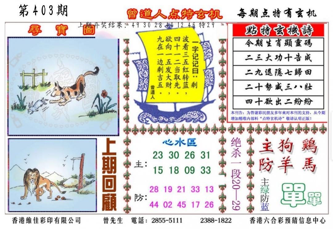 波霸白姐 曾道人龙凤榜 神算报