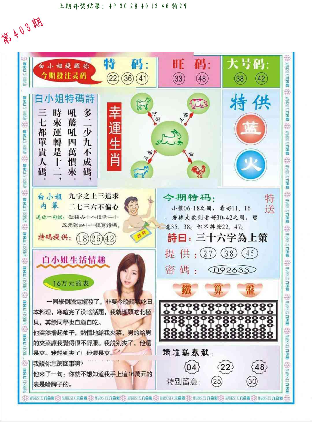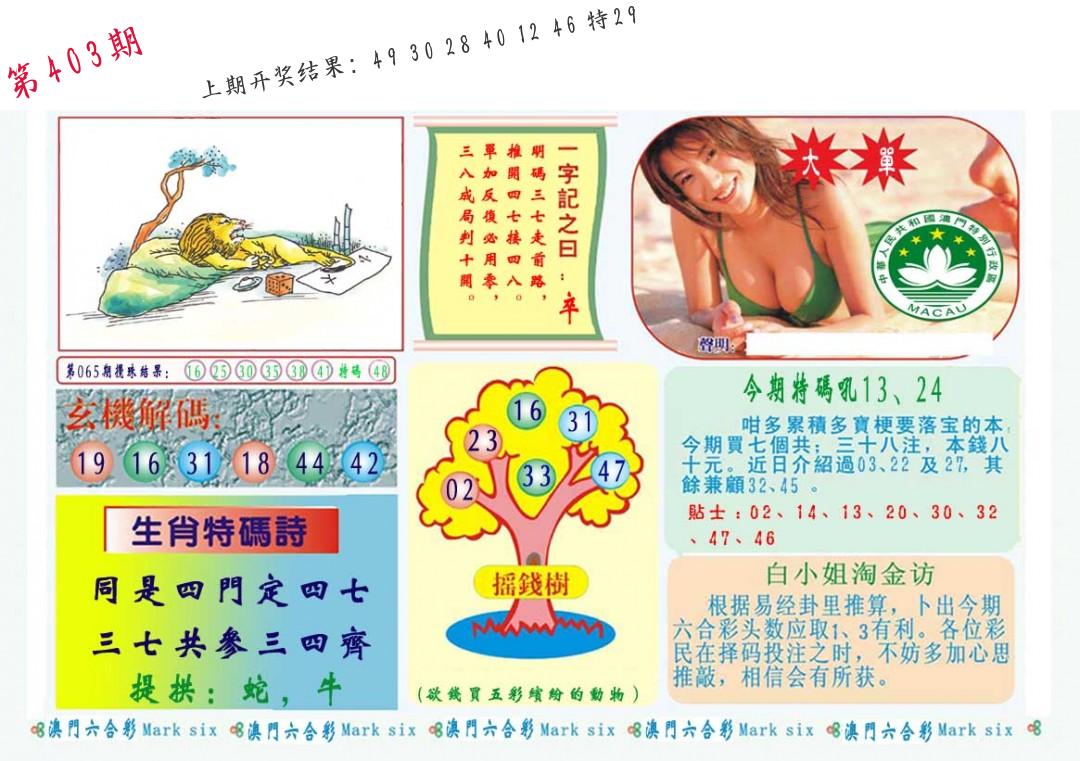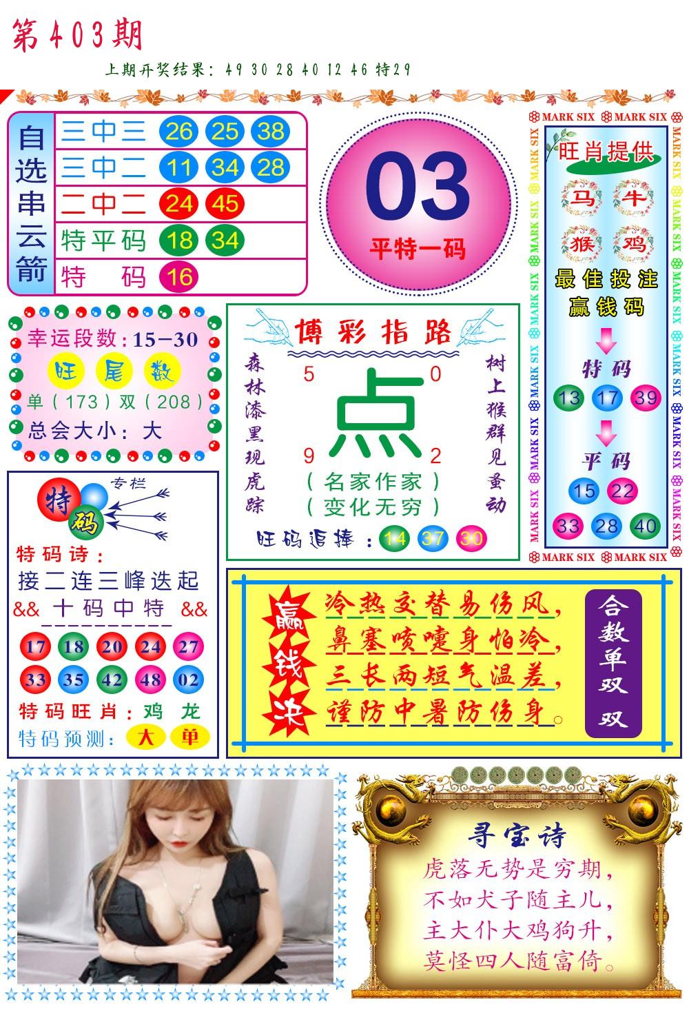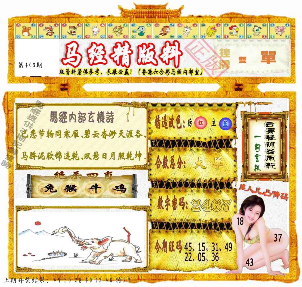 马会内部传真 马会追踪B版 美女数码料