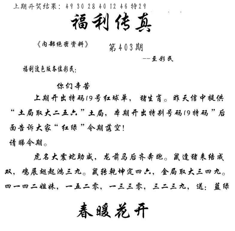 心水内幕图 神机妙算 福利传真