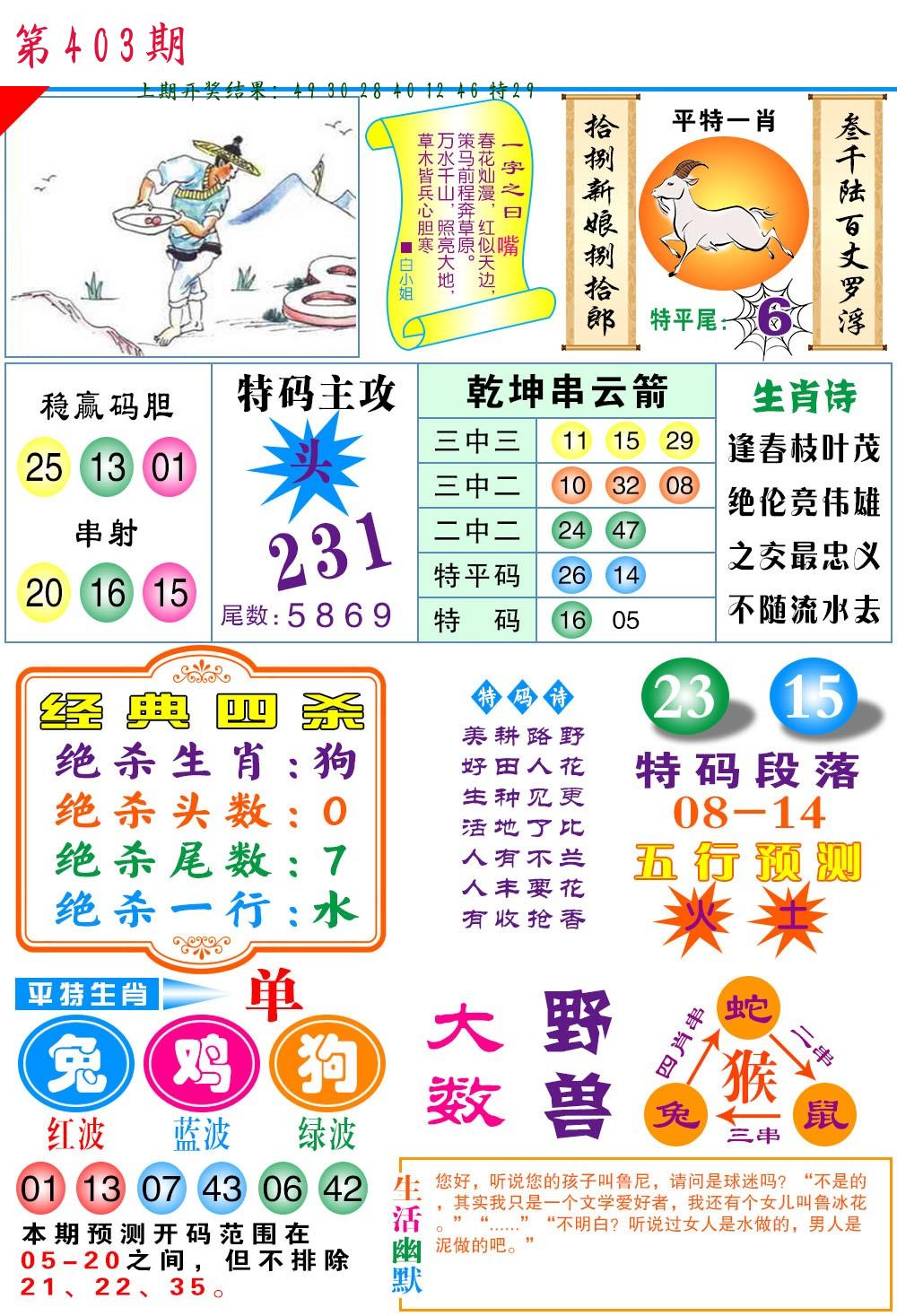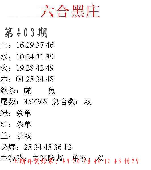 画中有话 特码快讯 波路五行