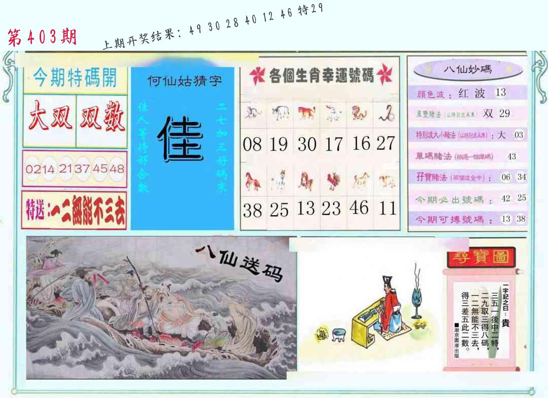 内部玄机 曾道人特码诗 八仙神算