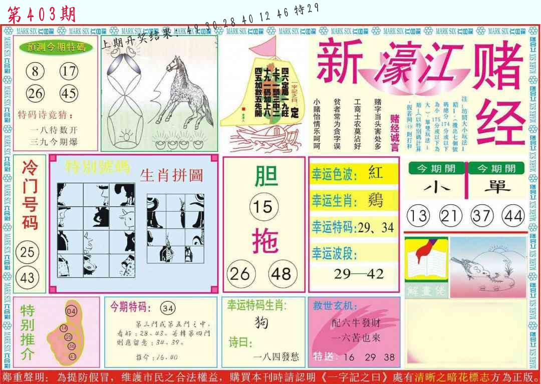 新濠江赌经报 荣华富贵图A 赌王心经
