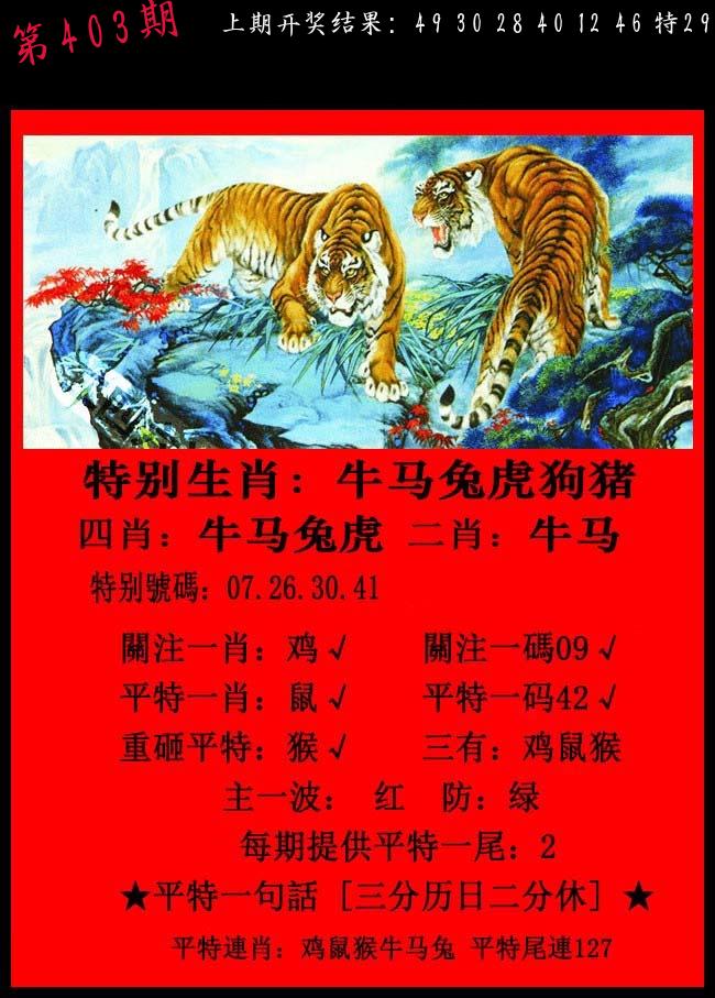 0401期:单双四肖八码 开:41虎错